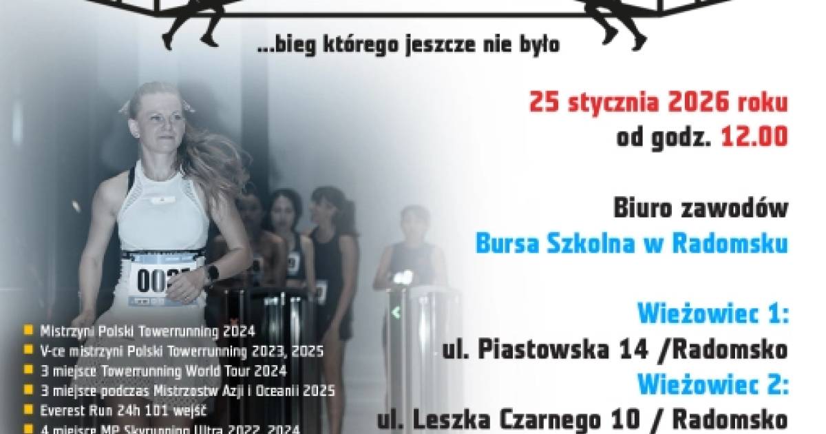 Start wydarzenia zaplanowano 25 stycznia na godzinę 12.00. Areną sportowych zmagań będą wieżowce przy ul. Piastowskiej 14 i przy ul. Leszka Czarnego 10. To oryginalna forma aktywności, łącząca bieganie i pokonywanie schodów w dwóch radomszczańskich wieżowcach.