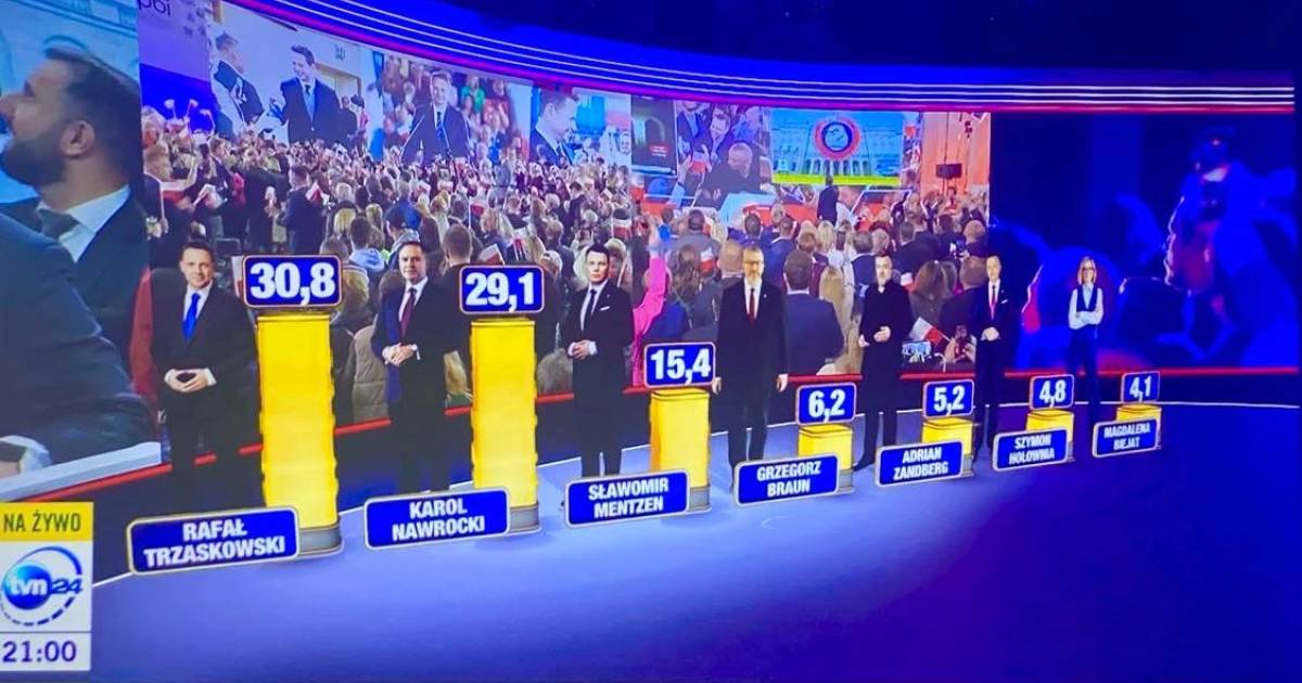 W niedzielę, 18 maja odbyła się pierwsza tura wyborów prezydenckich w Polsce. Wyniki exit poll pracowni Ipsos wskazują, że zwycięzcą pierwszej tury został Rafał Trzaskowski, który uzyskał 30,08 procent poparcia. Tym samym w drugiej turze zmierzy się z Karolem Nawrockim, który zdobył 29,1 procent.