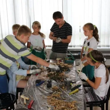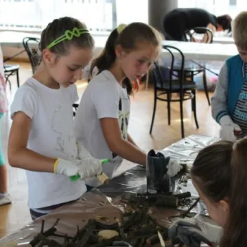 Mali artyści pod okiem pięciorga twórców sztuki ludowej mieli okazję rzeźbić figurki ptaków, tworzyć kwiaty z papieru lub kompozycje z surowców naturalnych. Nowością tegorocznej edycji warsztatów było stoisko do animacji poklatkowej, gdzie dzieci mogły ożywić swoje własnoręcznie wykonane prace.