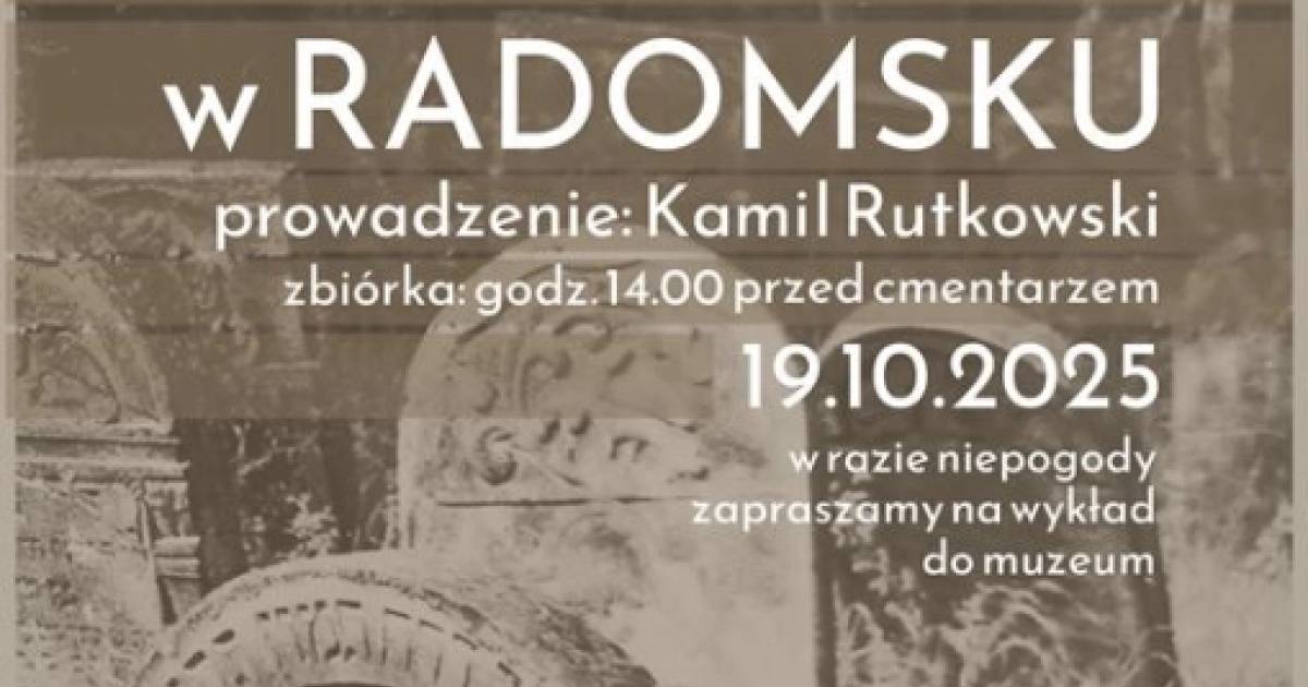 W niedzielę, 19 października zostanie zorganizowany spacer po cmentarzu żydowskim w Radomsku, który poprowadzi Kamil Rutkowski. Początek wydarzenia zaplanowano na godzinę 14.00, a zbiórka uczestników odbędzie się przed cmentarzem.