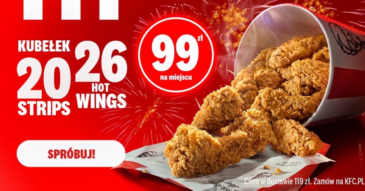 Koniec roku wymaga mocnego uderzenia. Zamiast spędzać godziny w kuchni, skup się na tym, co naprawdę ważne – najbliższych i celebrowaniu wspólnych momentów. KFC wchodzi w finał 2025 roku z ofertą, która sprzyja spotkaniom w większym gronie. Już od 29 grudnia do 4 stycznia w restauracjach i w dostawie pojawi się Kubełek Noworoczny, a w nim aż 46 kawałków chrupiącego kurczaka. Przywitaj 2026 rok z 20 soczystymi polędwiczkami Strips i 26 skrzydełkami Hot Wings.