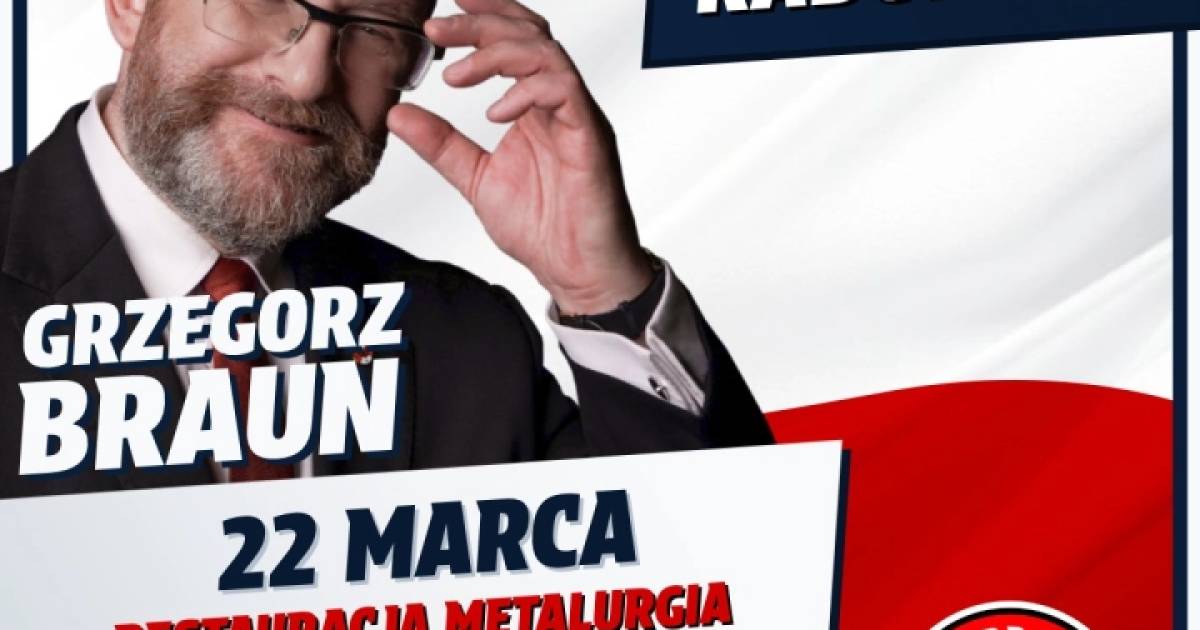 W Radomsku odbędzie się spotkanie wyborcze z Grzegorzem Braunem, kandydatem na Prezydenta RP, w Restauracji Metalurgia, w sobotę 22 marca o godzinie 10.00.